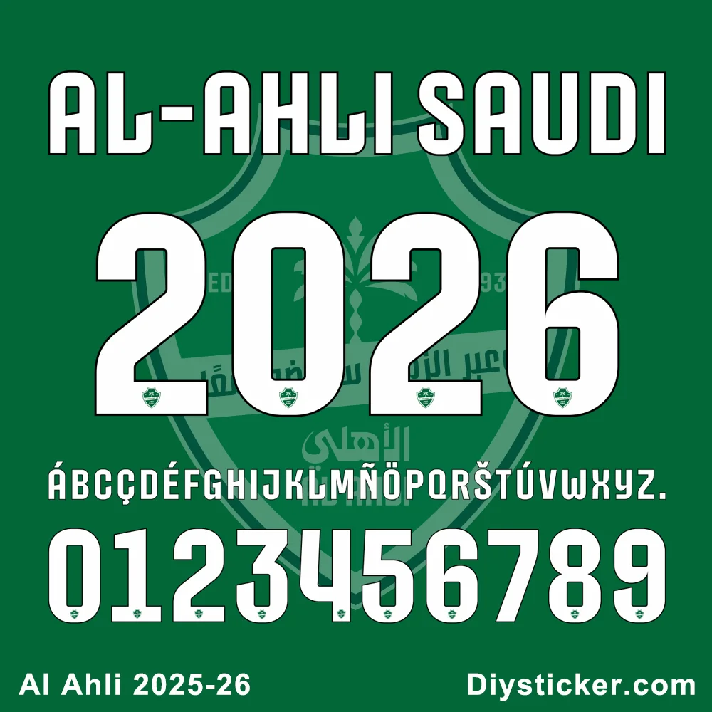 Represent one of Saudi Arabia’s most prestigious clubs with the official Al Ahli Saudi 2025-26 Font. This is the authentic typeface used by the Jeddah-based club on its official kits, Saudi Pro League graphics, and all communications for the new season.