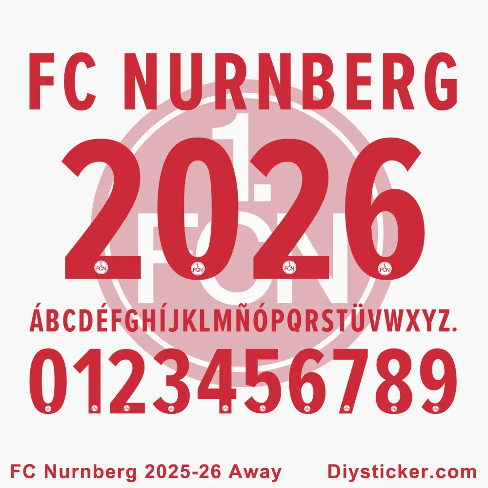 Represent the historic Der Club with the official FC Nurnberg 2025-26 Away Font. This is the authentic typeface used by the German club on its official kits, 2. Bundesliga graphics, and all communications for the new season.